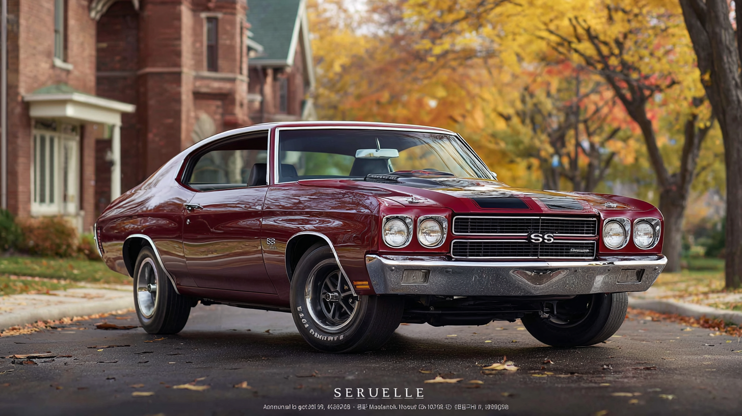 컬러 조합 측면에서도 LS6는 다양한 매력을 보여줍니다. Cranberry Red처럼 화끈한 색상은 말 그대로 “전설의 머슬카”라는 이미지를 그대로 보여주는 반면, Fathom Blue나 Forest Green, Cortez Silver 같은 컬러는 차체의 곡선과 크롬 몰딩을 보다 고급스럽고 차분하게 강조해 줍니다. 여기에 요즘 수집가들이 선호하는 업스케일 미국 주택가 배경 사진과 함께라면, 단순한 자동차 사진이 아니라 하나의 라이프스타일 장면처럼 보이기도 합니다.