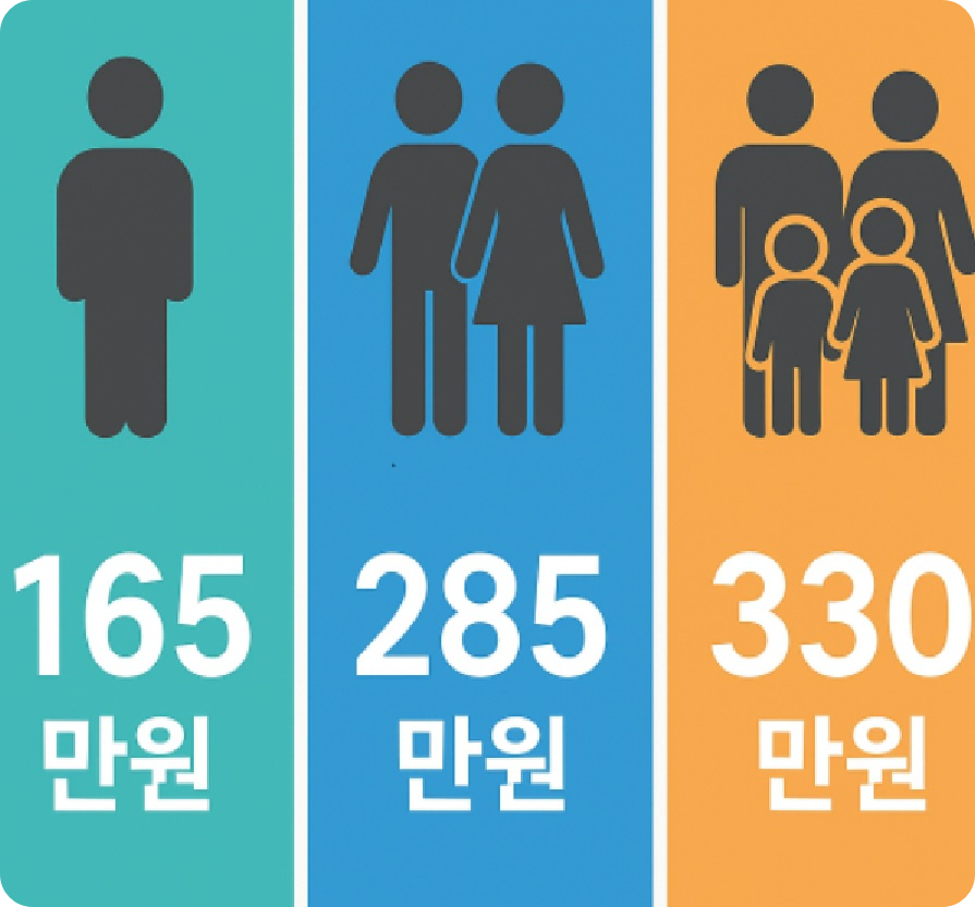 | 홑벌이가구 | 3,200만원 이하 | 2,100만원 이하 | 271만원 |
