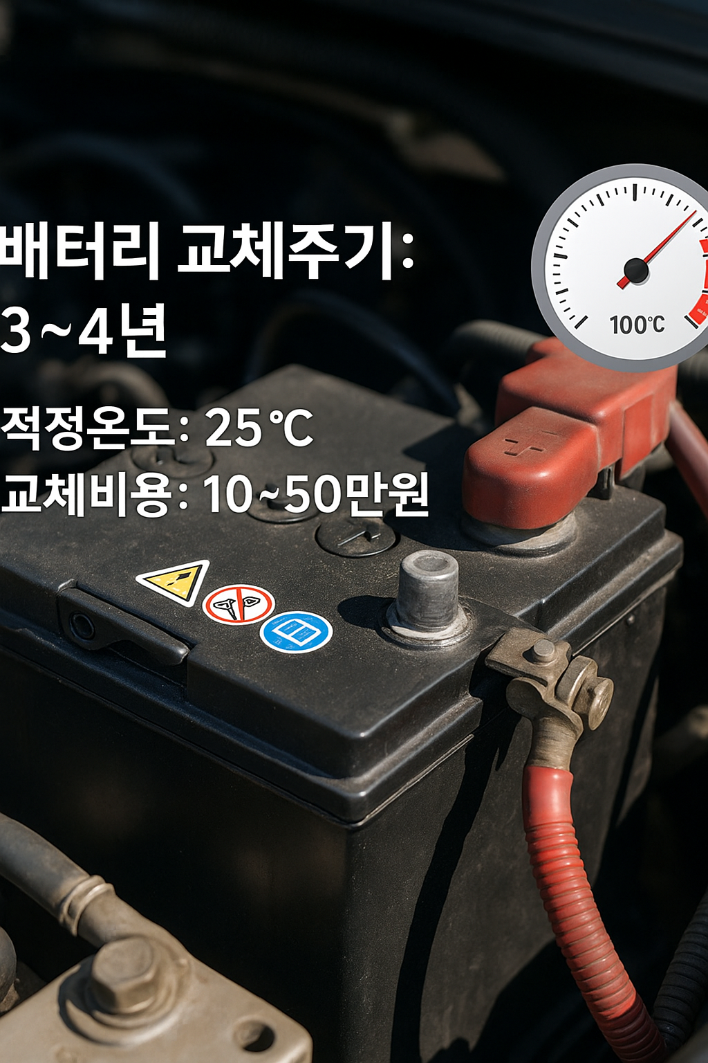 - 면책 고지: 배터리 가격 및 교체 주기는 차종과 사용 환경에 따라 달라질 수 있음, 정확한 정보는 정비소에서 확인 필요