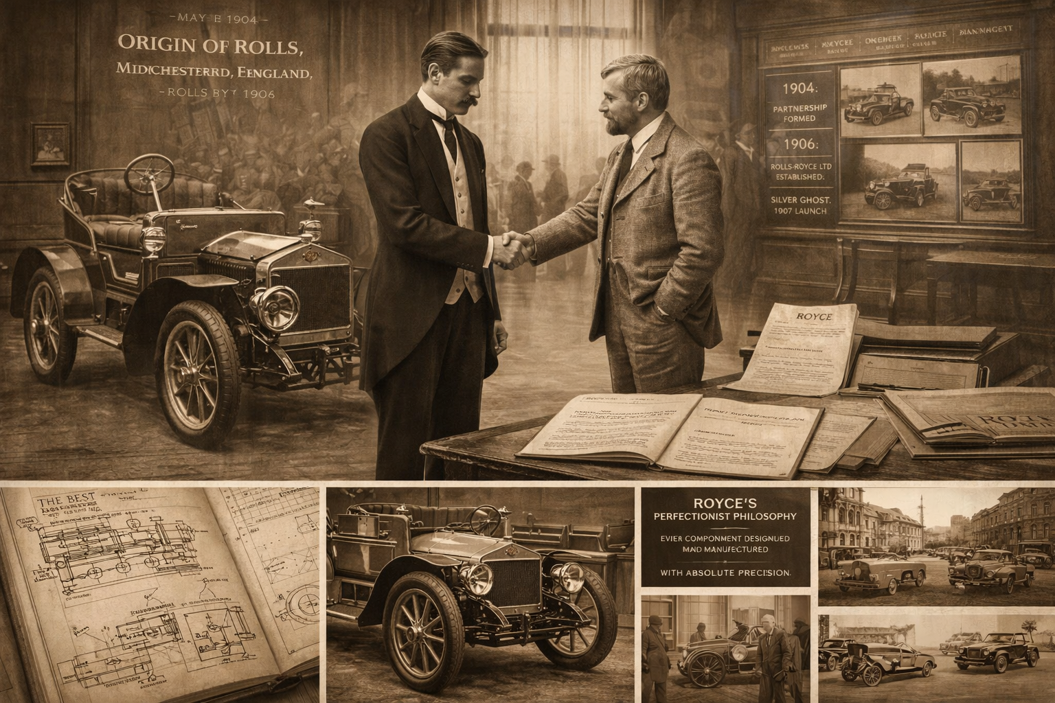 맨체스터 미들랜드 호텔에서 두 남자가 만났는데, 찰스 롤스는 귀족 출신의 자동차 딜러였고 헨리 로이스는 자수성가한 엔지니어였습니다. 롤스는 좋은 차를 찾고 있었고, 로이스는 자신이 만든 차를 보여주고 싶어했으며, 두 사람은 즉시 의기투합했습니다. 롤스가 로이스의 2기통 차를 시승한 후 말했는데, "이것은 내가 탄 차 중 가장 좋은 차입니다."
