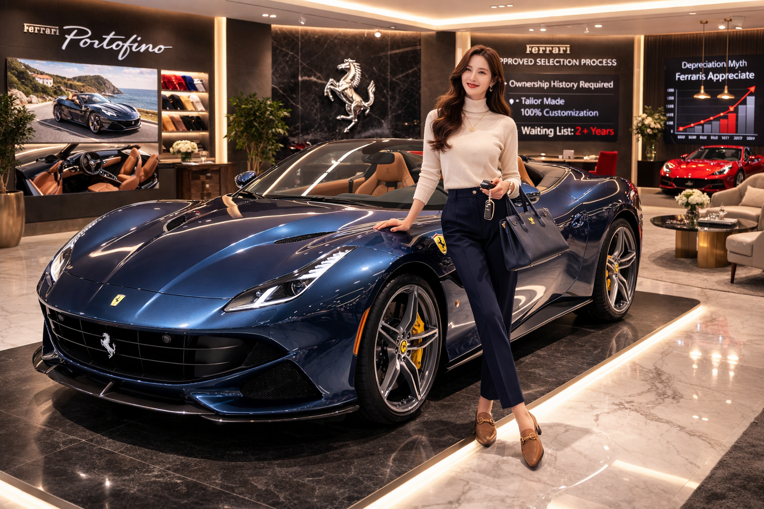 페라리는 자동차가 아니며 라이프스타일 이며, 정체성입니다. 또한 꿈의 실현입니다. 그래서 사람들은 18개월을 기다리고, 페라리가 정한 규칙을 따르고, 할인 없이 정가를 냅니다. 선택받는다는 것 자체가 기쁨이니까요. 억만장자도 거절당할 수 있는 브랜드. 돈보다 열정을 중시하는 브랜드. 이것이 페라리이며 프리미엄의 비밀입니다.
