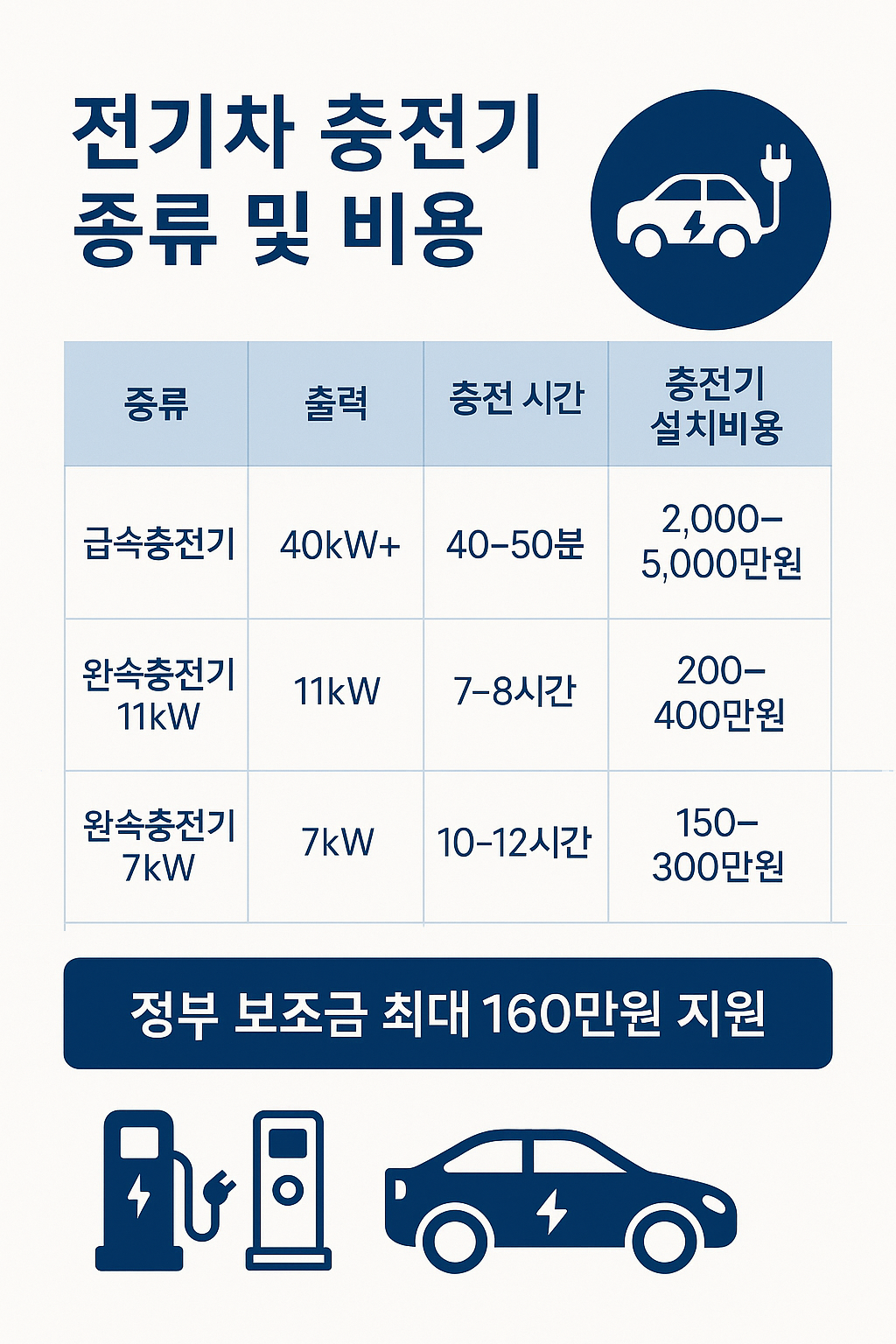 | 완속충전기 (11kW) | 11kW | 7~8시간 | 200~400만원 | 아파트 주차장, 직장, 공영주차장 |