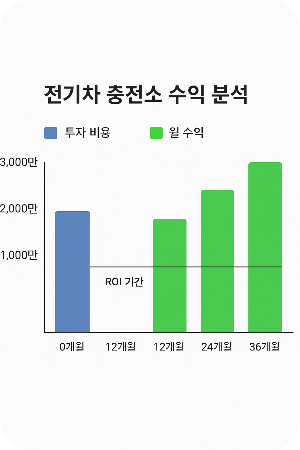 사업 확장 전략: 초기 충전기 운영이 성공적일 경우, 주변 지역으로 사업을 확장하거나 급속충전기 도입을 고려할 수 있습니다. 정부의 2030년 123만 기 설치 계획에 따라 충전 사업의 성장 가능성이 매우 높습니다.