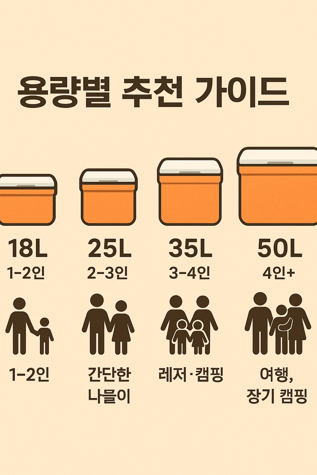 - 50L 이상: 4인 이상, 장기간 차박이나 대용량 저장 필요시